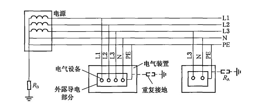 A、TN-S系统为电源中性点直接接地时,电气设备外露可导电部分通过零线接地的接零保护系统,即设备外壳连接到PE线上