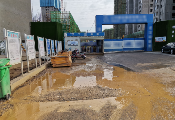 图中施工大门前存在问题的主要原因是什么?( )