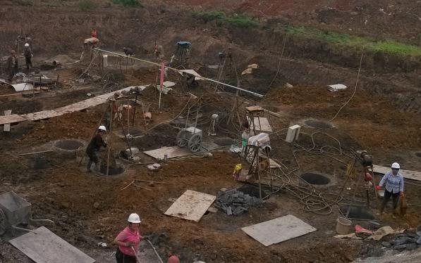 下图中有大量人员在进行人工挖孔桩的施工,根据现场安全情况判断,最有可能发生什么安全事故?